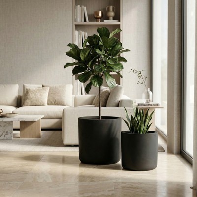 NAYSAYE Round Concrete Planter Set of 2 Handmade with Drainage Holes, Durable for Indoor and Outdoor Use, Black, 13.31"*13.31"*12.72"