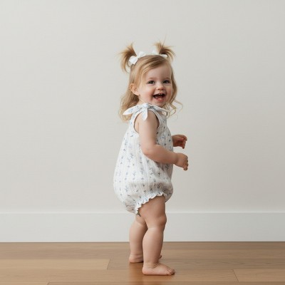 Organic Tie Shoulder Bubble Romper - Ivy Floral