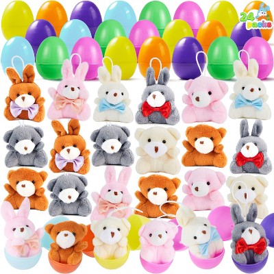 Joyfy 12/24/48 Packs Prefilled Easter Eggs with Plush Toy Set, Mini Stuffed Animals Plush Toys for Kids Easter Egg Hunt, Party Favors, Basket Fillers