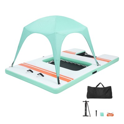 VEVOR Inflatable Floating Dock, 8 x 6 FT Inflatable Dock Platform, Non-Slip Water Air Mat with Portable Carrying Bag and Detachable Ladder,Green