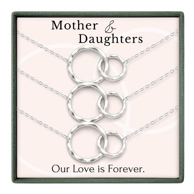 HOPE LOVE SHINE Set of 3 Mother and Daughters Circle Pendant Necklaces - Mixed Metal Gold & Sterling Silver Jewelry - Mother's Day Gift