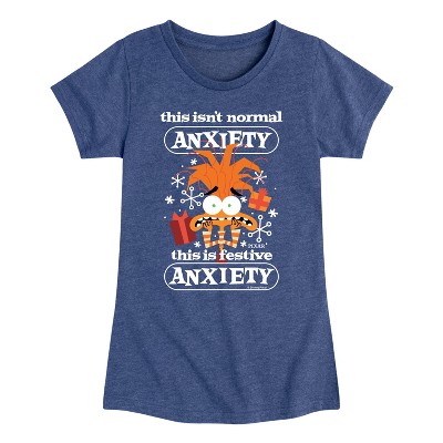 Girls' Inside Out Festive Anxiety Fitted Short Sleeve Graphic T-Shirt - Heather Navy - Medium