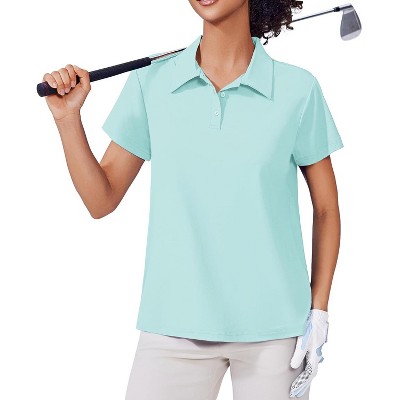 Pinspark Women's Golf Shirt UPF 50+ Polo Shirts Short Sleeve Tennis Tops Collared with 3 Button Athletic T Shirt