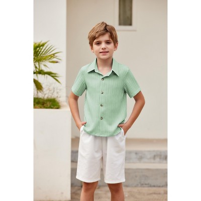Arshiner Boys Short Sleeve Button Down Shirt Texture Summer Beach Vacation Shirt 4-12 Years