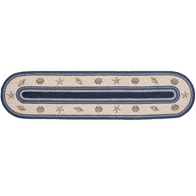 Earth Rugs Oval Patch Rug with Seashell Design, Coastal Theme, Jute, 2'x8' Runner