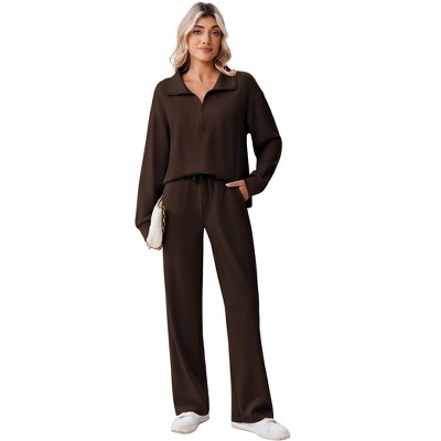 Pinspark 2 Piece Sets for Women 1/2 Zip Sweatsuit Loose Fit Sweatshirt Straight Leg Pants Matching Outfit Fall Tracksuit
