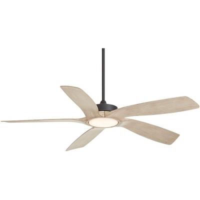 Casa Vieja 56" Mach 5 Farmhouse Rustic Indoor Outdoor Ceiling Fan 5 Blade LED Light Remote Control Black Motor Distressed White Oak Blades Damp Rated