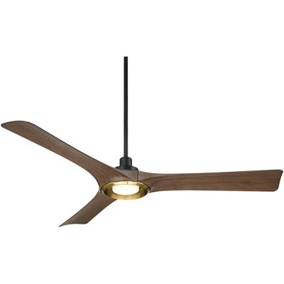 Casa Vieja 56" Ethos Modern Indoor Outdoor Ceiling Fan 3 Blade LED Light Remote Control Matte Black Finish Dark Walnut Finish Blades Bedroom Patio