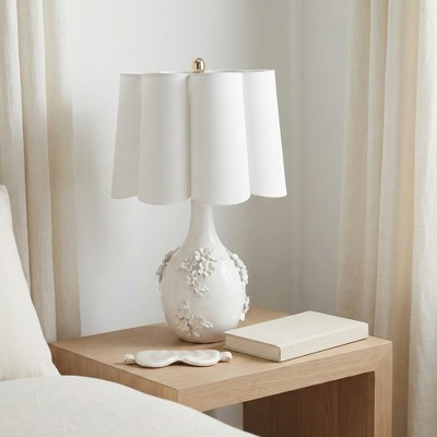 Ceramic Floral Base and Scalloped Shade Table Lamp for Home Decor - Decorative Table Lamp for Bedroom and Living Room Display - 25", Ivory & Tan