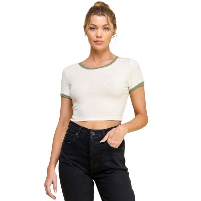 Slickblue Cropped Contrast Reverse Stitch Ringer Top for Women Relaxed Fit Casual Everyday Chic Top, Color Options, S-L