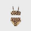 Women's Contrast Binding and Textured Leopard Print Bandeau Bikini Top - Wild Fable™ Black/Brown