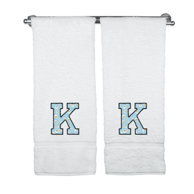 BC BARE COTTON Monogrammed Towels, Personalized Gift, Set of 2 - Embroidered Writing with Light Blue