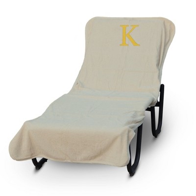 BC BARE COTTON Luxury Hotel & Spa Monogrammed Pool Chaise Lounge Cover, Standard Size 90 X 29 Inches - Beige - Gold Block