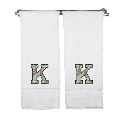 BC BARE COTTON Monogrammed Hand Towel, 100% Turkish Cotton - Set of 2 - White - Silver Block