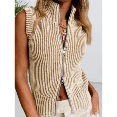 Imily Bela Women's Sleeveless Zip Up Knitted Vest Casual Striped Cropped Tank Top for Summer