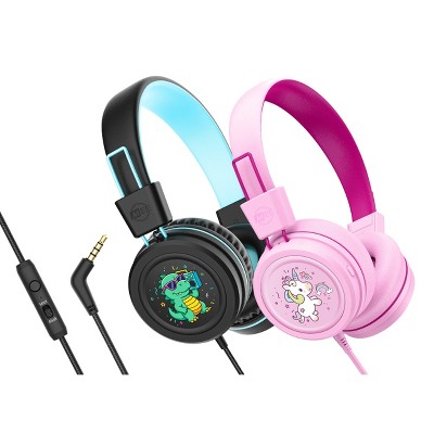 MEE audio KidJamz KJ55AUX (2 Pack) 3.5mm Safe Listening Kid's Headphones with Headset & Color Graphics