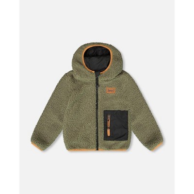 Deux par Deux Kids Unisex Reversible Mid-Season Fleece Jacket Khaki - 6 Years
