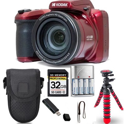 Kodak PIXPRO AZ405 Digital Camera (Red) + Spider Tripod + Case - 32GB Kit