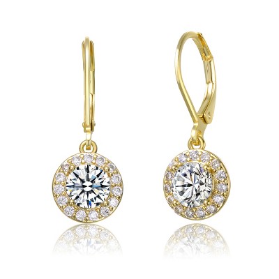 Guili Halo Dangle Earrings with bezel Set Round Cubic Zirconia