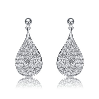 Guili White Gold Plated with French Pave Cubic Zirconia Raindrop Pear Dangle Earrings
