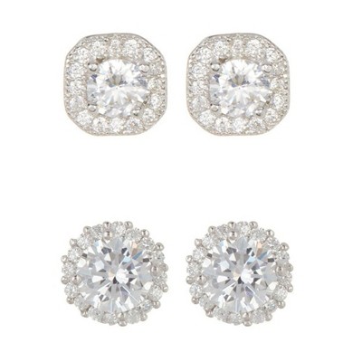 Adornia Silver 2-Piece Halo CZ Earring Set