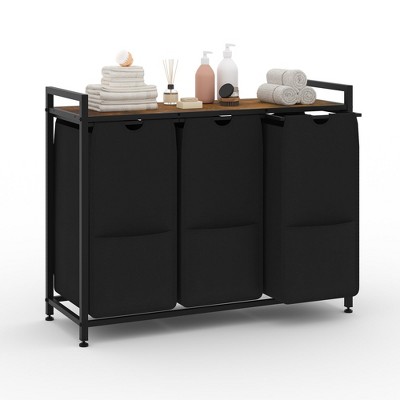 Laundry Hamper 3 Section, Laundry Sorter with Shelf & 3 Pull-Out Removable Oxford Fabric Bags, Laundry Basket Organizer for Laundry Room, Black