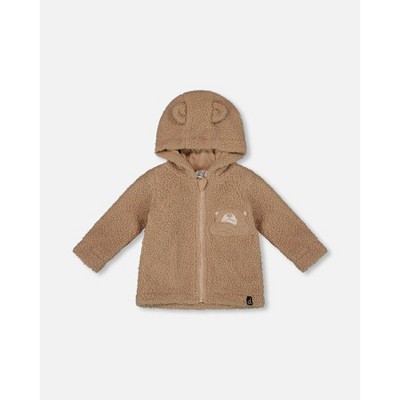 Deux par Deux Boy Fleece Bear Hooded Zip Jacket Brown - 24 Months