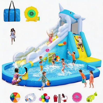 Yaheetech Inflatable Water Slide Giant 6-in-1 Dual Lane for Kids