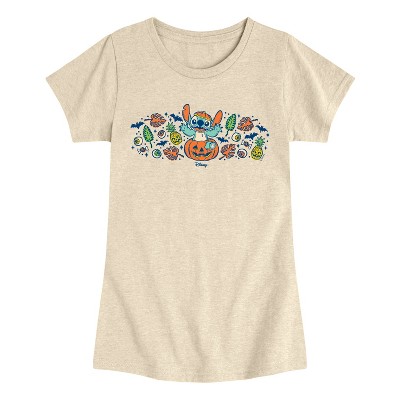 Girls' - Lilo & Stitch - Stitch Halloween Pumpkin Fitted Short Sleeve Graphic T-Shirt