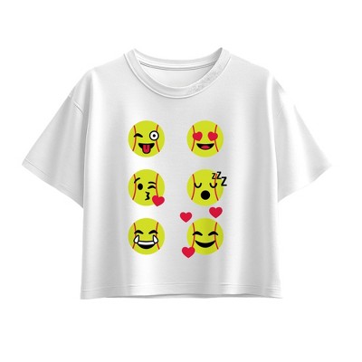 Girls' - Instant Message - Softball Emojis Short Sleeve Boxy Graphic T-Shirt