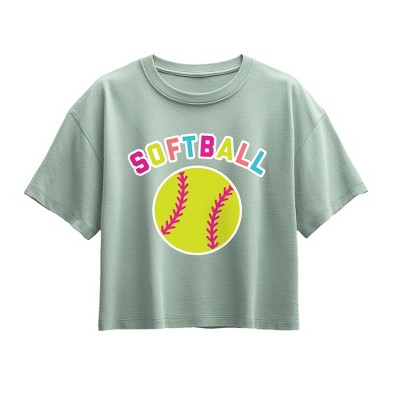 Girls' - Instant Message - Colorful Softball Short Sleeve Boxy Graphic T-Shirt