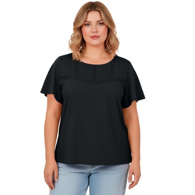 Roaman's Plus Size Mesh Soutache Scoop Neck Flare Sleeve Tunic