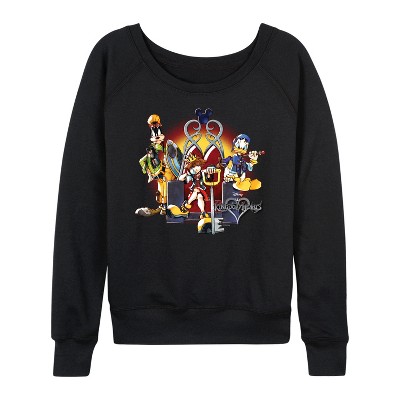 Women's - Kingdom Hearts - Sora, Goofy, & Donald Lightweight French Terry Wide Neck Long Sleeve Graphic Shirt