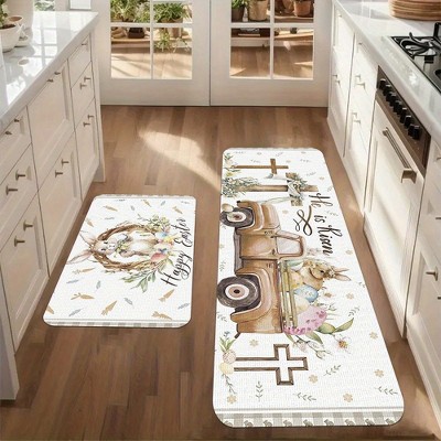 Lomsoe 2pcs Easter Pattern Flannel Carpet, suitable for bedroom, living room, dining room, kitchen, bathroom, and entry-Flannel floor mats.