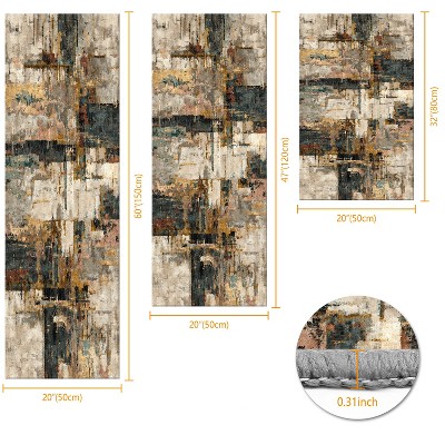3Pcs Kitchen Rug Set Non-Slip Washable Abstract Soft Mat for Kitchen Bathroom Hallway Laundry Sink Floor