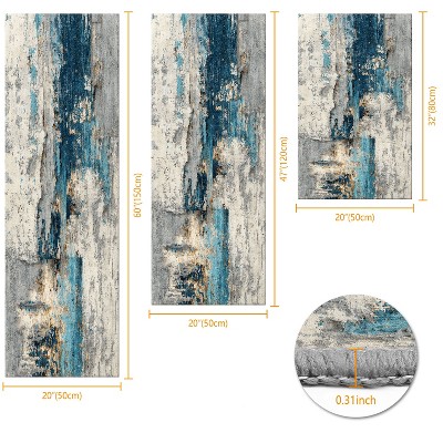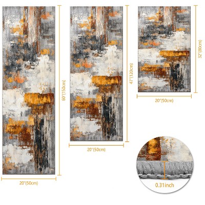 3Pcs Kitchen Rug Set Non-Slip Washable Abstract Soft Mat for Kitchen Bathroom Hallway Laundry Sink Floor