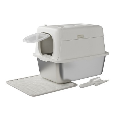 Stainless Steel Enclosed Cat Litter Box with Lid, Non-Stick Rust-Proof, 8" Deep for Large Cats, Includes Litter Filter & Scoop