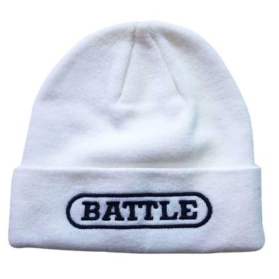 Batman Property of Arkham Knit Beanie With Cuff And Rectangle Leather Patch, Black