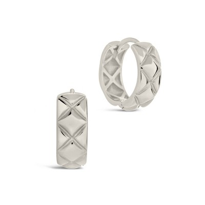 Metallo Mens Stainless Steel Diamond Design Huggie Hoop Earrings - Silver