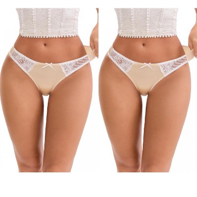 INSPIRE CHIC Women's Lace Trim Satin Elastic Low-Waisted Traceless Comfortable Breathable Hipsters Briefs 2 Packs