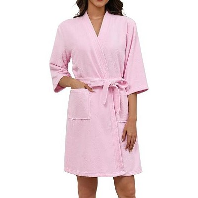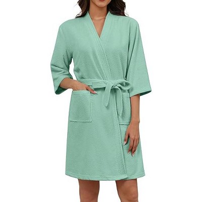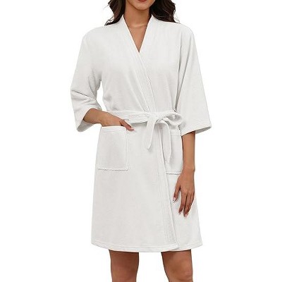 Ekouaer Women Terry Cloth Robes Absorbent Towel Robe Knee Length Soft Bathrobe 3/4 Sleeve Spa Robe with Pockets