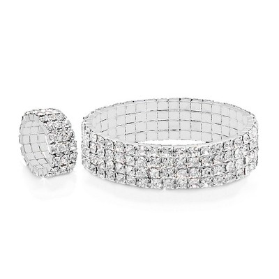 Tennis Bracelet Set, Adjustable Silver Bracelets for Women, Brides, Wedding Gift