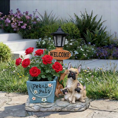 NAYSAYE French Bulldog Family Planter Statue Mother and Puppy Design Lifelike Garden Decor for Succulents and Flowers, Brown, 15.75"*10.24"*14.57"