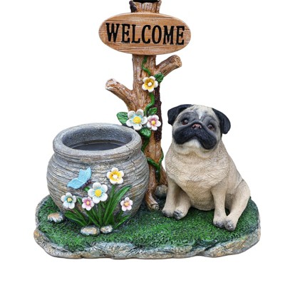 NAYSAYE Sitting Pug Dog Planter Statue for Garden Patio and Home Decor with Functional Planter for Plants, Brown, 14.96"*9.45"*14.17"