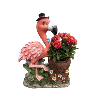 NAYSAYE Outdoor Garden Sculpture Flamingo Flower Pot Planter with Welcome Sign Unique Yard Statue for outdoor space, Pink, 22.83"*9.06"*25.98"