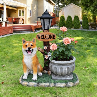 NAYSAYE Sitting Akita Dog Garden Decor Loyal Dignified Design for Flowers and Greenery Perfect for Outdoor Spaces, Brown, 16.54"*9.45"*14.57"