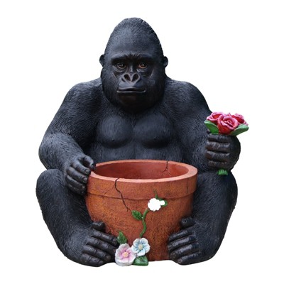 NAYSAYE Outdoor Garden Sculpture Gorilla Flower Pot Unique Yard Statue with Lifelike Design for Decorative Accent, Black, 18.5"*17.32"*19.69"