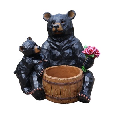 NAYSAYE Outdoor Garden Sculpture Bear and Cub Flower Pot Planter Unique Yard Statue for Garden Decor and Accent, Black, 21.65"*17.72"*20.47"