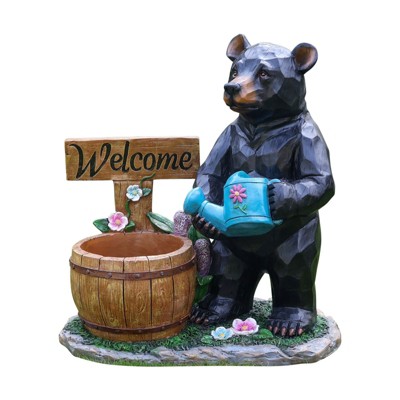 NAYSAYE Outdoor Garden Sculpture Bear Flower Pot Planter Unique Yard Statue with Welcoming Sign for Decorative Accent, Black, 24.02"*14.17"*25.98"