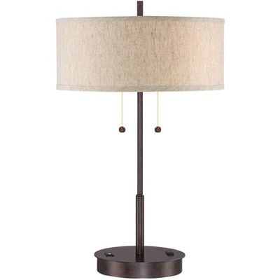360 Lighting Modern Table Lamp with Dimmable USB and Outlet Workstation Base 24.5" High Bronze Tan Fabric Cylinder for Living Room Desk Bedroom